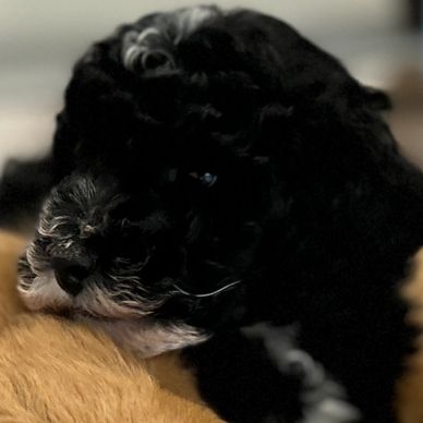 9 week old Black with a little white Cavapoo male available. Great personality and a cuddle bug. Up to date with vaccinations, dewormed and vette. Siblings available, white and black male and blue merle.